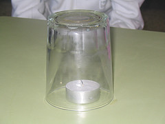 Cando o lume da chama consome o osíxeno que hai no vaso, a candea apágase.