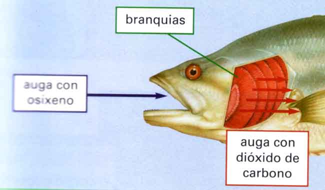 absorvendo o osíxeno da auga ao pasar polas branquias.