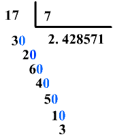 Si el resto no llega a ser 0, son números decimales periódicos. Por ejemplo: