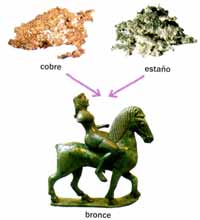 O bronce é unha aliaxe de cobre e estaño moi resistente. Úsase para fabricar campás, estatuas, ... | |