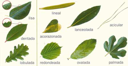 as partes verdes das plantas que nacen das ramas. Están formadas por: