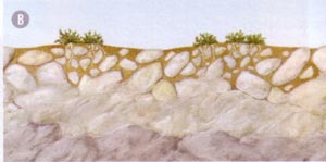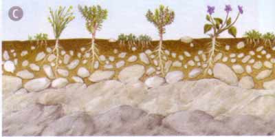 Pouco a pouco os anacos de rocha mestúranse cos restos de animais e plantas, formando unha mestura de cor escura que se chama humus. |