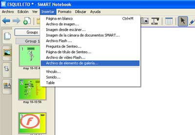 en NOTEBOOK engadimos unha nova páxina e imos a INSERTAR-ARQUIVO