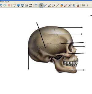 retocámola. Logo escribimos os textos cos nomes dos ósos do cranio,