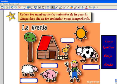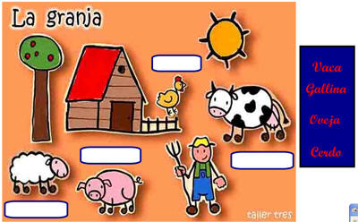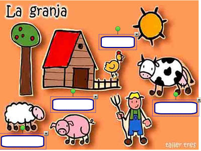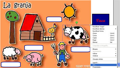 Imos a INSERIR-FICHEIRO DE IMAXE e seleccionamos no noso cartafol de recursos a imaxe granja.jpg. Unha vez inserida a imaxe, a seleccionamos e a bloqueamos despregando o menú contextual BLOQUEO-BLOQUEAR POSICIÓN, para que non se mova. |