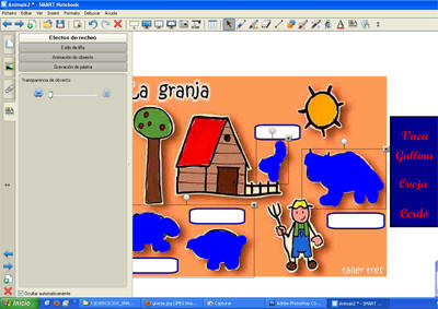 Unha vez feitos os borróns en cada animal, os seleccionamos todos e imos a PROPIEDADES-EFECTOS DE RECHEO e dámoslle TRANSPARENCIA DE OBXECTO 100% | |
