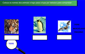 Ao mover a lupa e pasala por onde están agochados os nomes dos animais, deben ir aparecendo. |