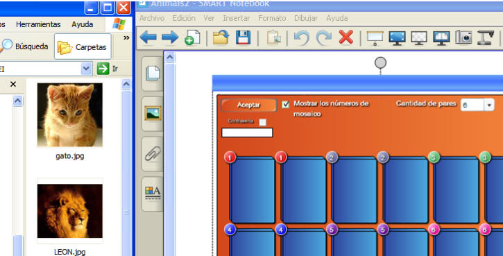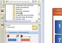 Imos á pestaña lateral GALERÍAS e seleccionamos LAT 2.0 ES- ACTIVIDADES - PARES - INTERACTIVA Y MULTIMEDIA (é preciso ter instalado o paquete TOLKIT 2.0). Pinchamos nun deles e o arrastramos á folla do caderno de notas. |
