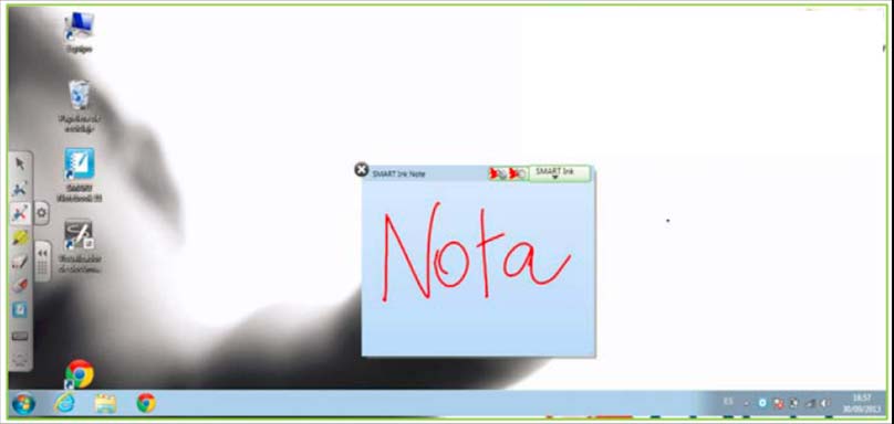 Cando pulsamos a icona do rotulador da barra de ferramentas flotantes ou levantamos un rotulador da bandexa de rotuladores, ao escribir sobre o escritorio actívase unha ventá (coma se fose un postit) onde podemos escribir, esta opción só se pode facer con SMART Ink activado. As anotacións que realizásemos pódense capturar (dende o menú SMART Ink, que aparece á dereita da ventana/nota/post-it, dende a opción "capturar").
