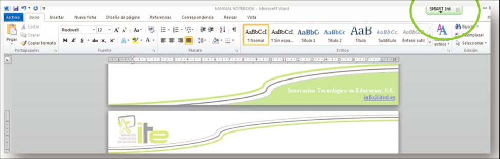 SMART Ink permítenos debuxar e realizar anotacións en tinta dixital na pizarra interactiva SMART sobre outros programas e aplicacións distintos do software de SMART (Notebook). Para traballar con SMART Ink en aplicacións que non sexan Notebook primeiros debemos comprobar que a barra de ferramentas SMART Ink está activada (aparece sempre na esquina superior dereita como se ve na seguinte imaxe):