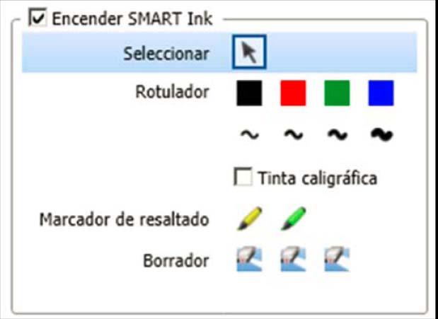 Configuración: ao pulsar en esta icona abrirase a ventá de configuración de SMART Ink.
