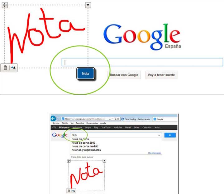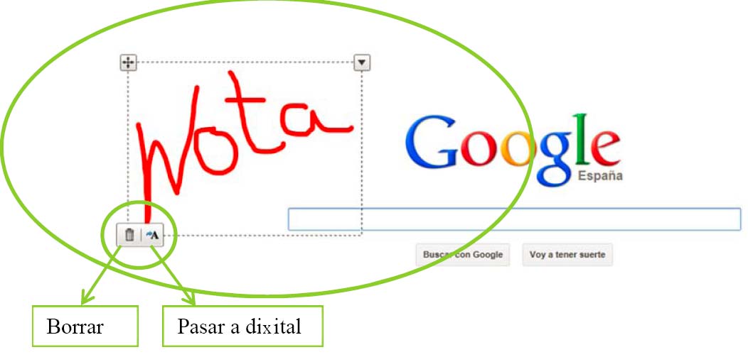 Recordemos que unha vez realizadas as anotacións podemos capturalas dende o menú do SMART Ink na opción "Capturar". Cando escribimos sobre unha páxina web tamén temos a opción de pasalo a tinta dixital, para iso só temos que seleccionar (picar sobre a tinta dixital do que escribimos) e automaticamente aparecerán dúas opcións tal e como se mostra na seguinte imaxe: