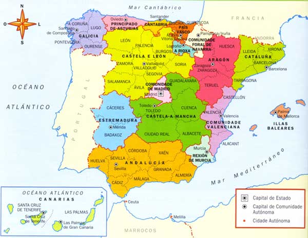 Atlántico) e as cidades de Ceuta e Melilla (en África).