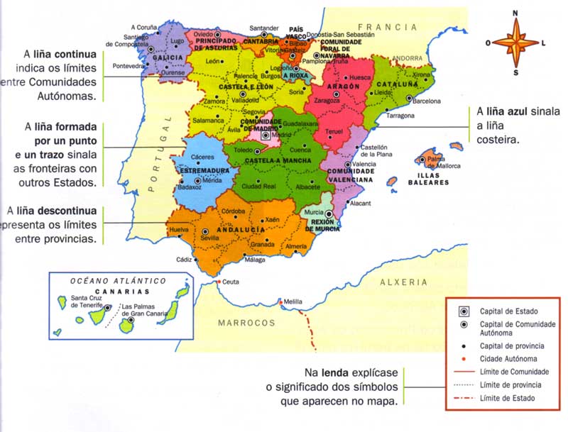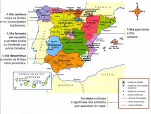 Fai "clic" aquí ou na figura de abaixo para ler o mapa político de España e logo realiza no caderno estas actividades: |